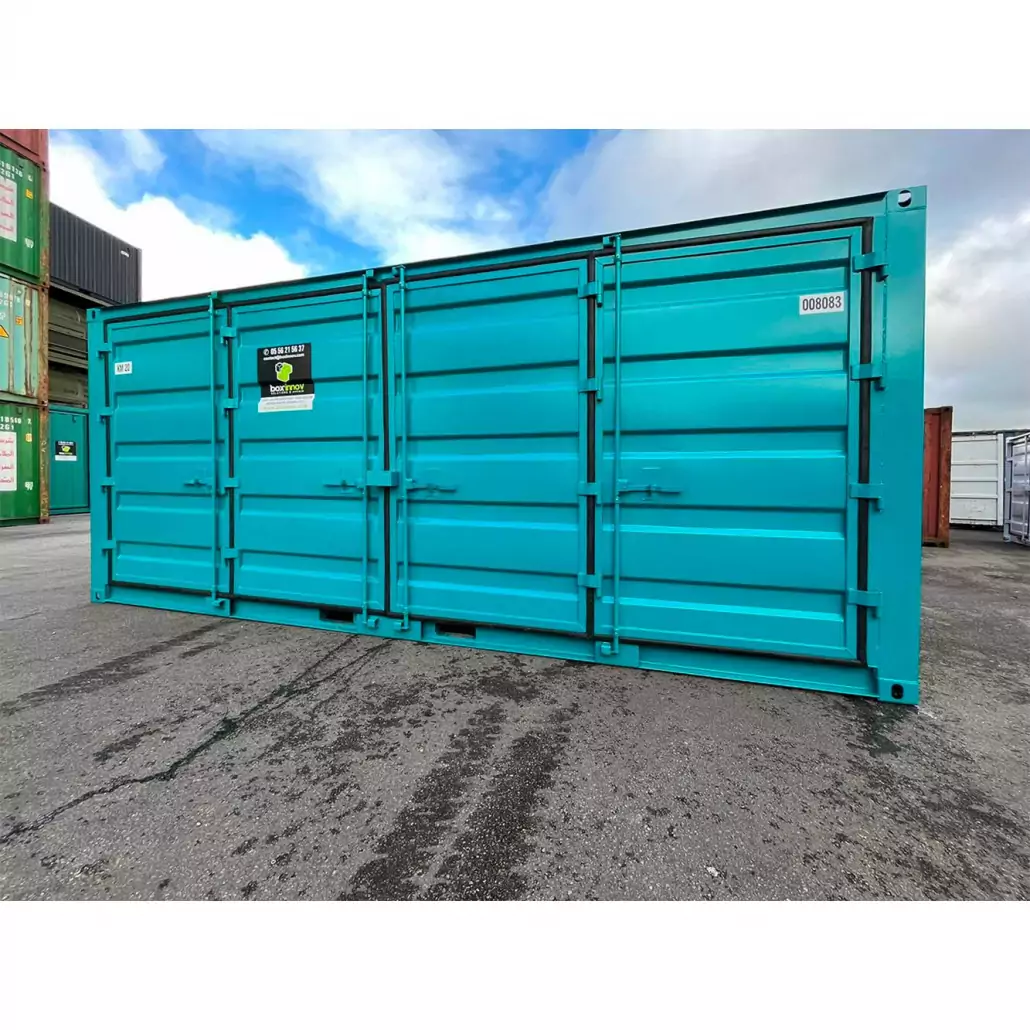 Le conteneur 20 pieds open side stockage s’utilise pour les chantiers de construction ou les activités de self-stockage. Le conteneur est très robuste grâce à son ouverture latérale. De plus, vous ne perdrez plus de place dans le conteneur grâce à son ouverture complète. Par ailleurs, le container Open Side 20 pieds à ouverture latérale possède une porte à double battant avec cache cadenas.